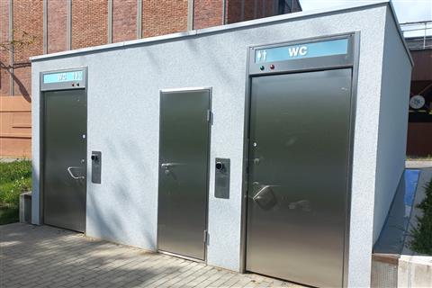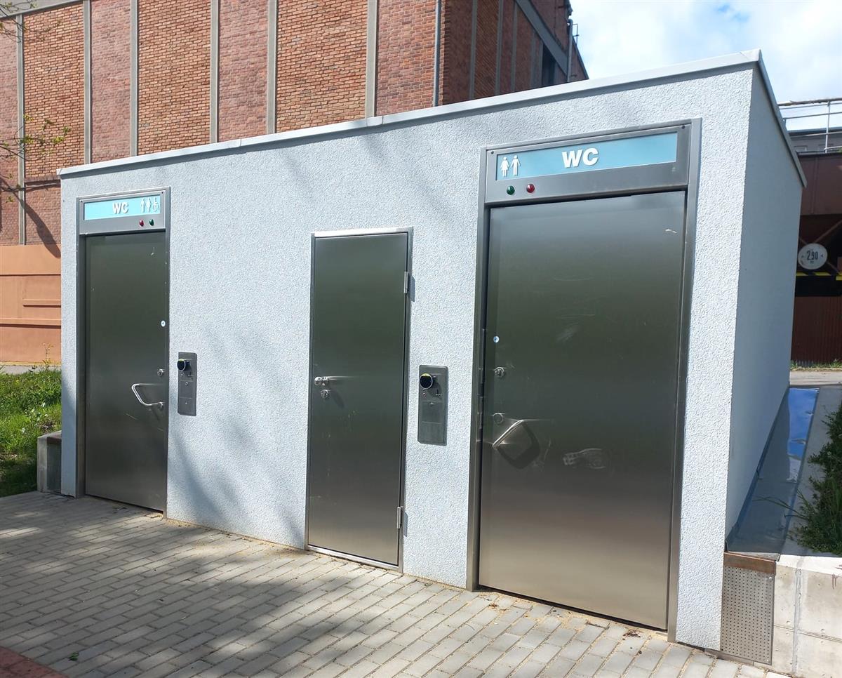 IROP 2021-27: 4. výzva IROP - Cestovní ruch. V místě s největší koncentrací turistů i místních rekreantů – pod Měšťanským pivovarem u řeky Otavy – vznikla nová automatická bezbariérová toaleta.